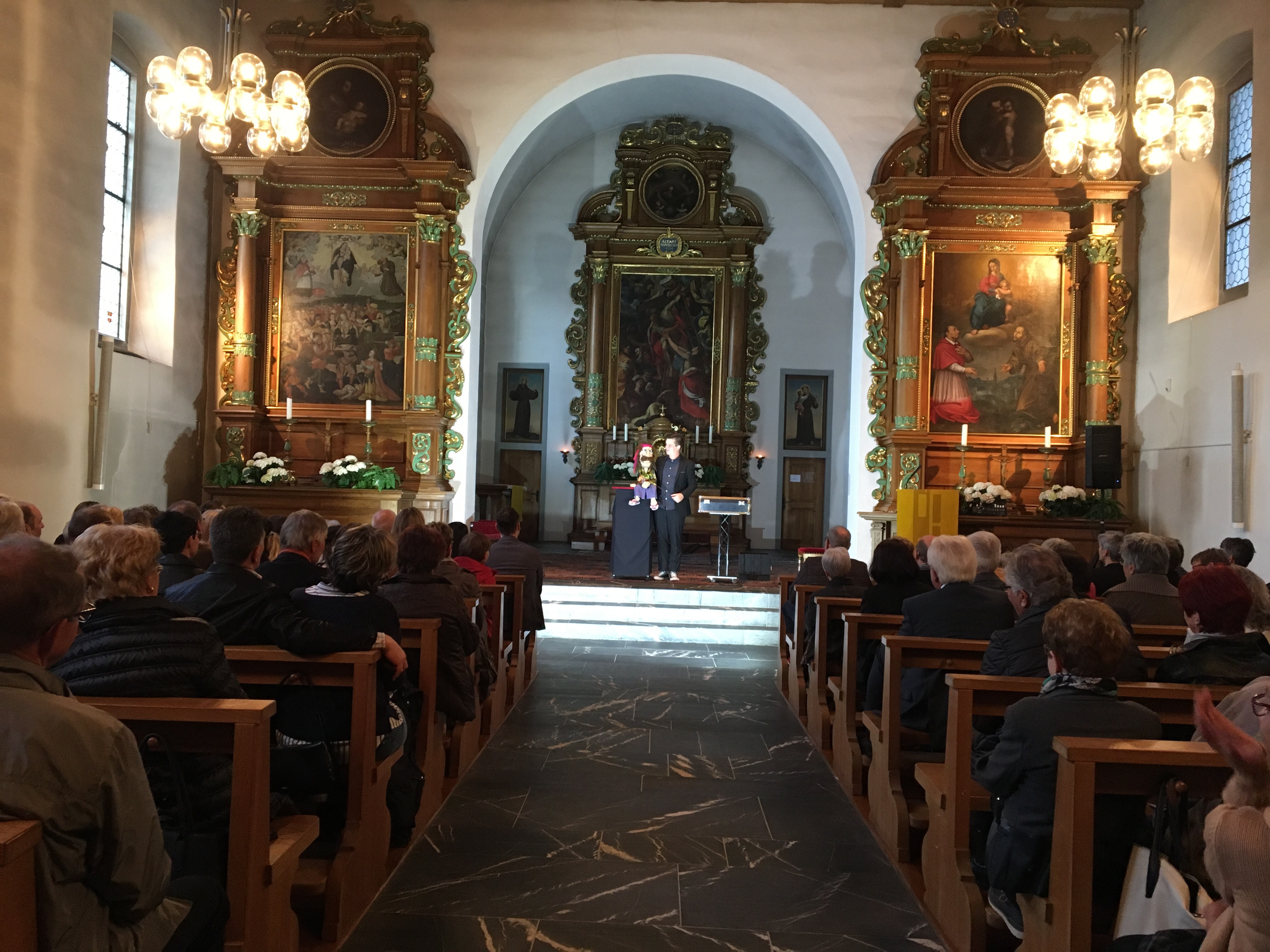 Gestern lud das Modehaus Goldener Appenzell in der Schweiz seine Kunden zum Firmenjubiläum ein und der Bauchredner Tim Becker durfte diese dann in einer ungewöhnlichen Location mit seiner Comedy Show unterhalten : Die Kirche eines Kapuzinerklosters. Joe der Hippie hatte auch eine Erleuchtung … das hätte aber andere Gründe